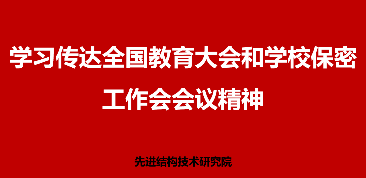 北理工先进结构技术研究院学习传达全国教育大会和学校保密工作会会议精神2024年11月12日上午,先进结构技术研究院召开党委理论学习中心组扩大学习,专题传达学习全国教育大会精神和学校保密工作会议精神,研究院全体教职工参加会议,会议由校长助理、研究院党委书记、院长杨亚政主持。 会上,杨亚政传达了学校党委理论学习中心组学习内容,领学了张军书记以《守正创新 绿色高质 朝着建成中国特色世界一流大学扎实迈进》为题作的重点发言,以及姜澜校长就推动世界一流大学高质量建设作的交流发言。杨亚政指出,深入学习贯彻全国教育大会精神,要把学习宣传贯彻与研究院科研、教育、人才培养等各项事业发展紧密结合,注重实效、提高实质,推动学习宣传贯彻工作走深走实、落实落地。师生党员要先学一步、学深一层,加强学习的深度和广度,深刻理解教育强国的科学内涵和基本路径,指导实践工作,提升工作的理论与方法。 会议还传达了学校保密警示教育大会暨保密警示教育宣传周总结会会议精神,深刻强调了保密工作的严肃性和重要性,号召全体教职工要认真学习新修订的《保密法》及其实施条例,切实增强保密意识,提升保密水平,进一步强化纪律意识。2024.11.19 -