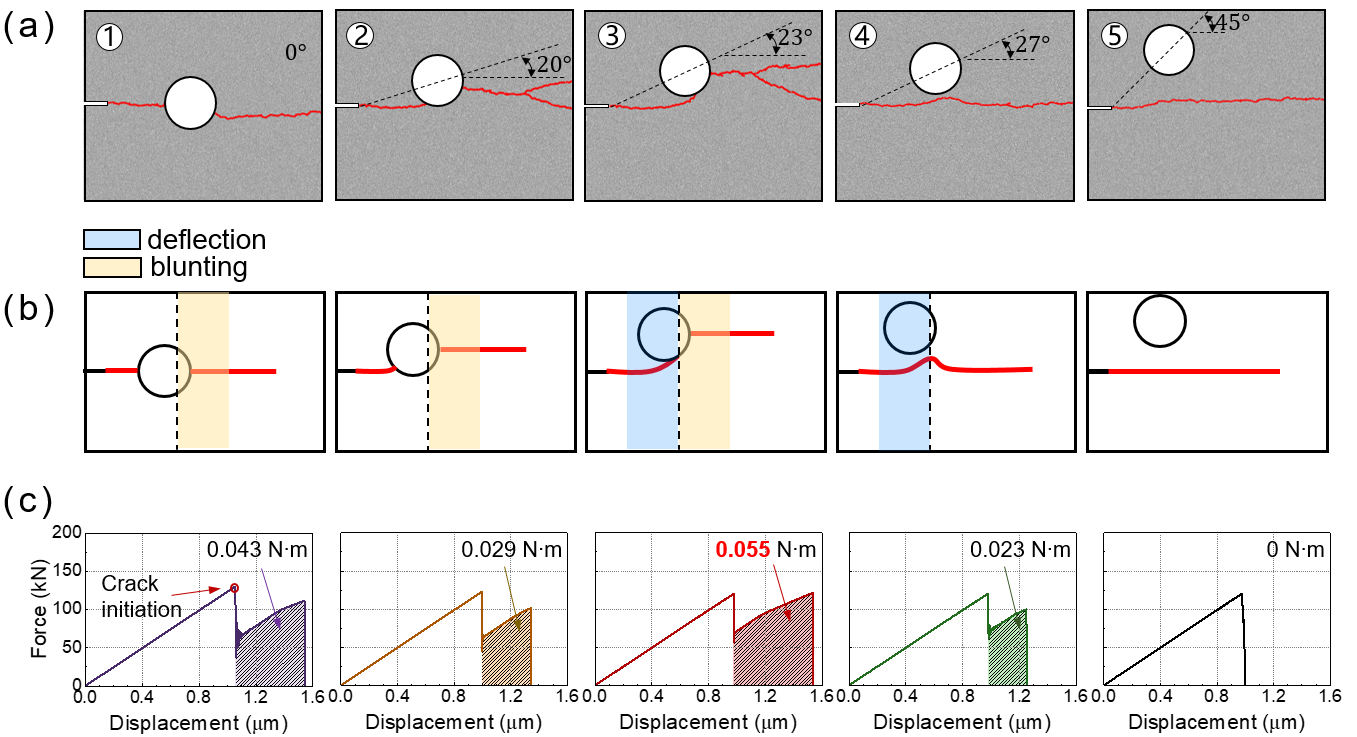 文章首先建立了基于离散元的非均质材料等效J积分计算框架(见图1),通过测量圆均匀化计算多尺度材料的路径无关J积分,实现复杂微结构影响下材料等效裂纹扩展阻力曲线的定量表征;进而分析了脆性材料中与孔洞相关的钝化钉扎和偏转钉扎,并通过调控孔洞与裂纹的相对位置激发不同增韧机制(见图2);最后通过引入随机分布微孔洞和周期分布微孔洞调控钉扎机制,从而控制裂纹扩展路径和等效断裂韧性,确定“增脆-增韧转变”和“最大增韧”的临界条件,并且将微孔洞钉扎机制推广应用于软硬双相异质材料设计,同样实现断裂性能的有效调控(见图3)。本文工作对于多尺度材料断裂性能等效均匀化、先进抗断裂材料和结构优化设计等具有重要意义。